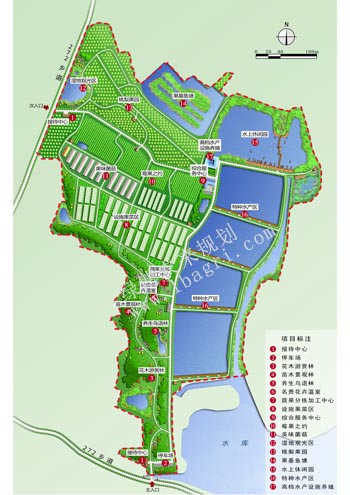 规划区为低山丘陵地带,水资源丰富,规划依托良好的生态环境和水资源优势,发展生态化现代农业和休闲旅游农业,打造“山水绿色田园,都市假日农场”,为城市居民提供蔬果采摘