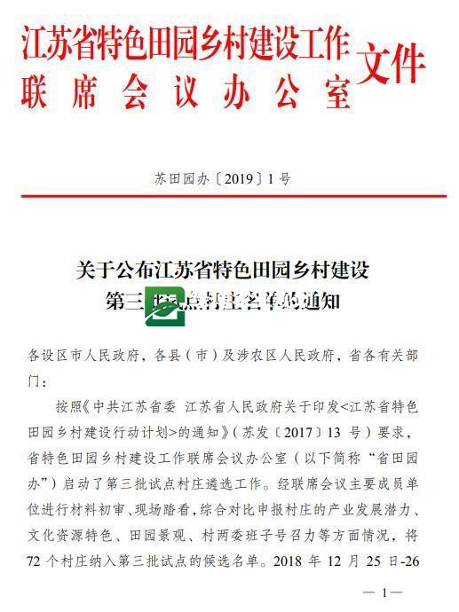 江苏省特色田园乡村建设第三批试点村庄名单公